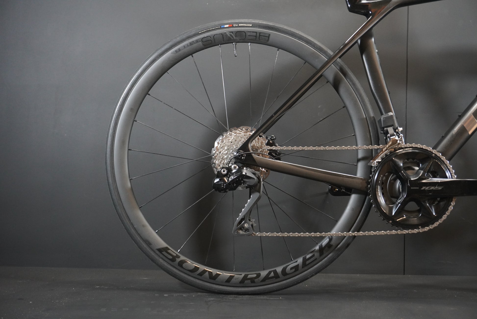 Rear Tyre:Bontrager R3 Hard-Case Lite, Tubeless Ready, aramid bead, 170 tpi, 700x28 mm
